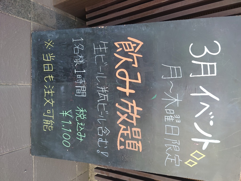 3月に入り、新メニューと共に飲み放題のプランを平日限定で開催します!